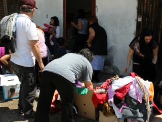 As most fled their homes with only the clothes they were wearing, the bags of donated shoes, T-shirts and jeans are picked over by evacuees desperately searching for their size.